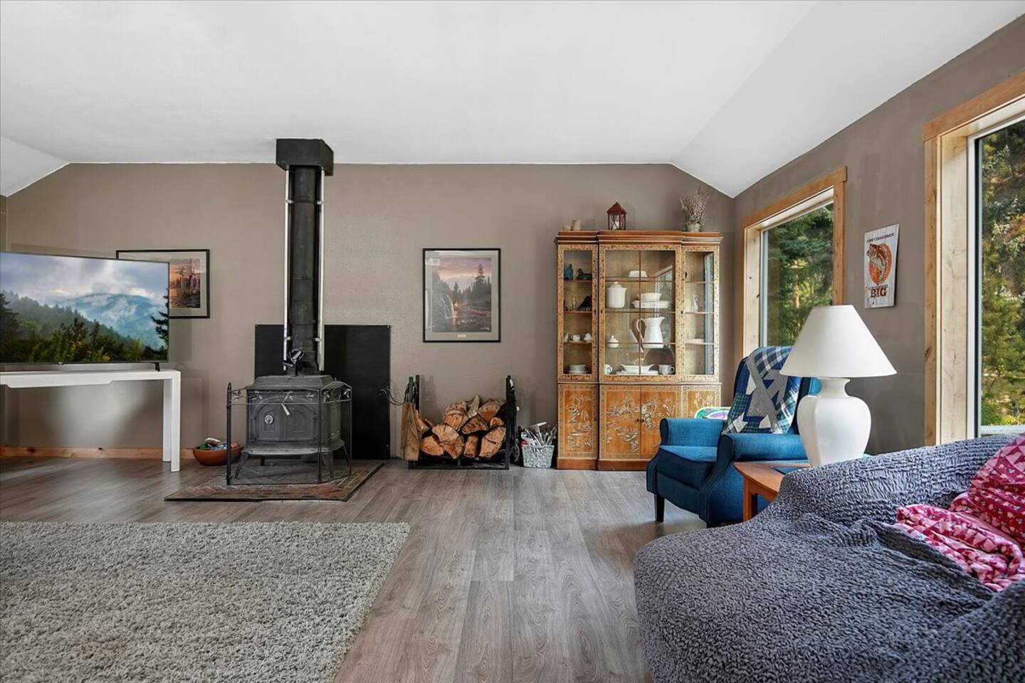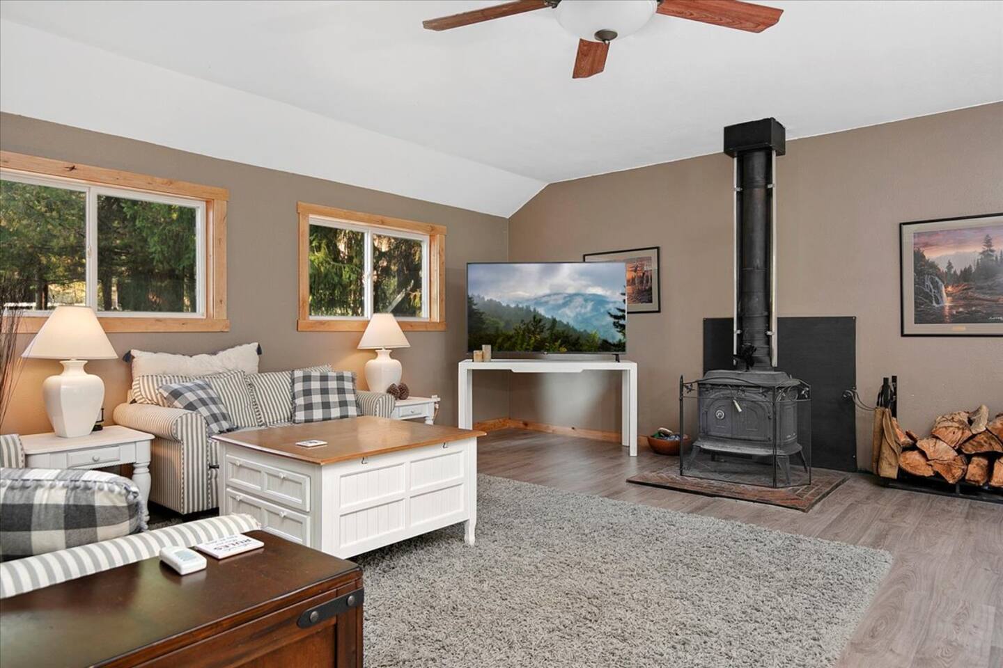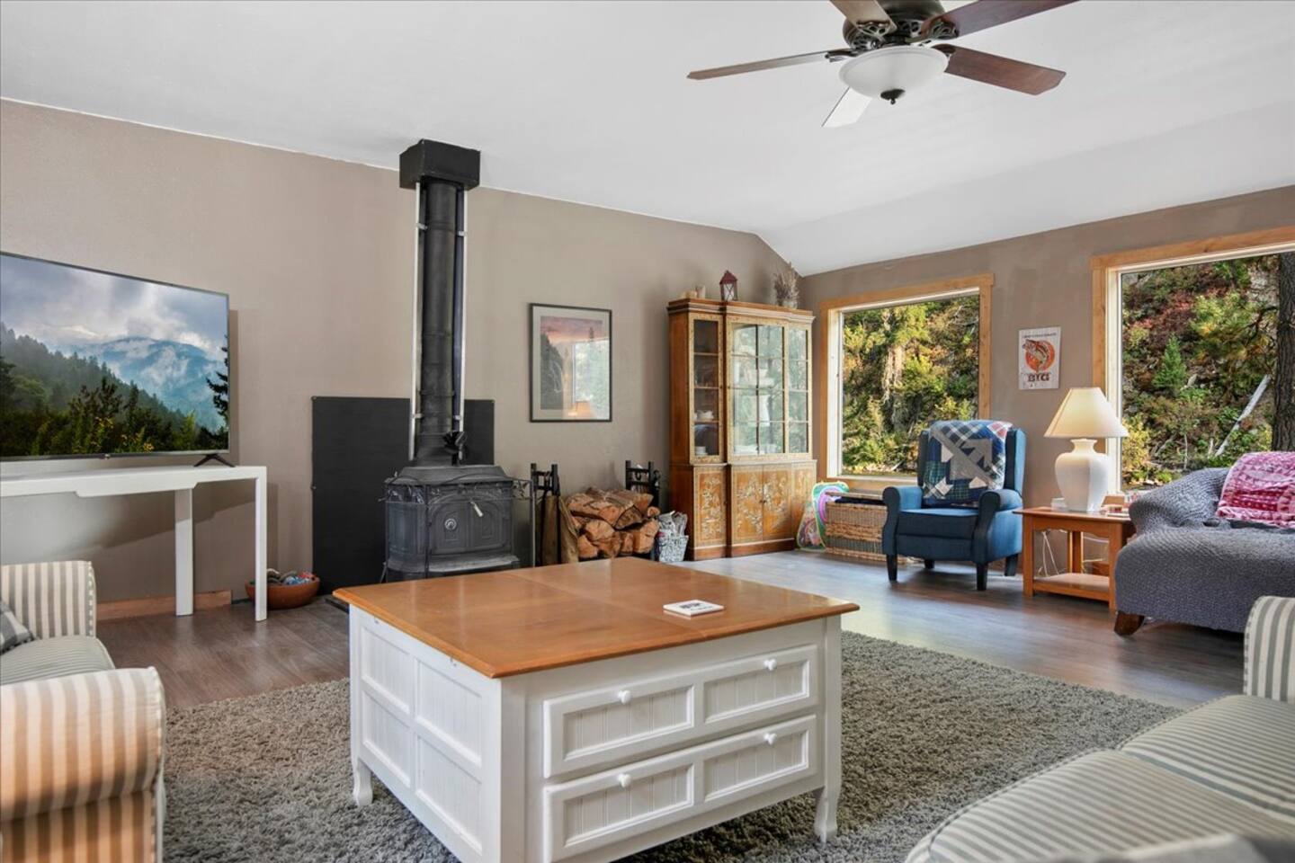 • Fully-Equipped Kitchen • Free Wi-Fi • Driveway Space for 2 Vehicles • Heating + Air Conditioning • Backyard and Furnished Patio • In-house Washer/Dryer + Detergent • Smart TV w/ Streaming Services Welcome to our charming riverfront cabin in Lowman, Idaho. This 2-Bedroom House offers many great features and amenities accommodating up to 8 people. • Master Bedroom: King bed • 2nd Bedroom: Bunkbed (full/twin), Twin Bed • 1st Bathroom: Tub/shower combo, toiletries, towels. • Living area: Smart TV, large couches • Kitchen: fully equipped, cooking utensils provided + access to washer/dryer • Outdoor Area: private deck with furnished patio, charcoal BBQ