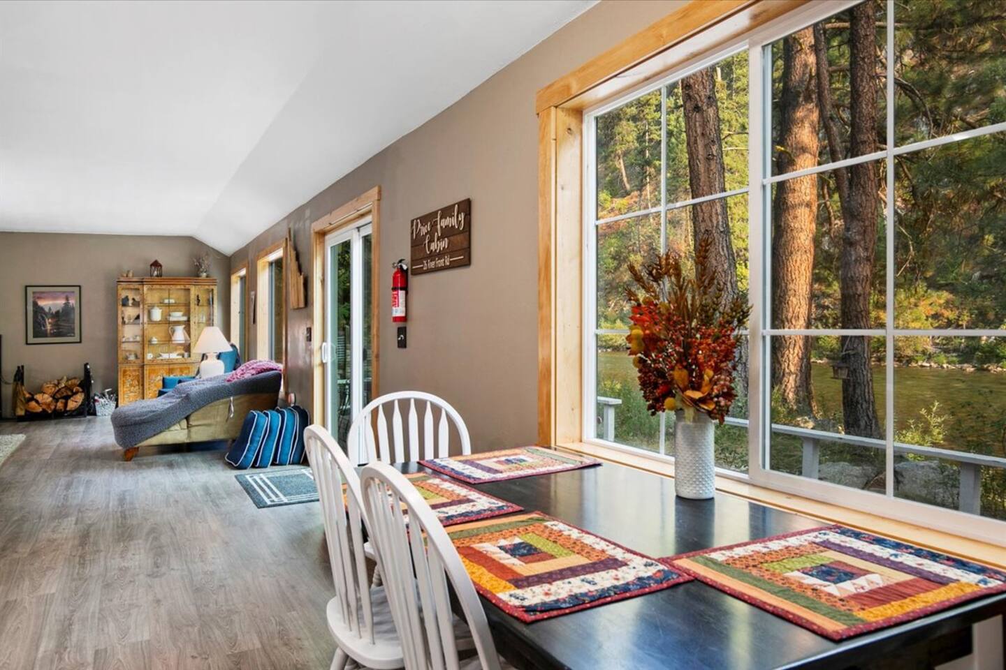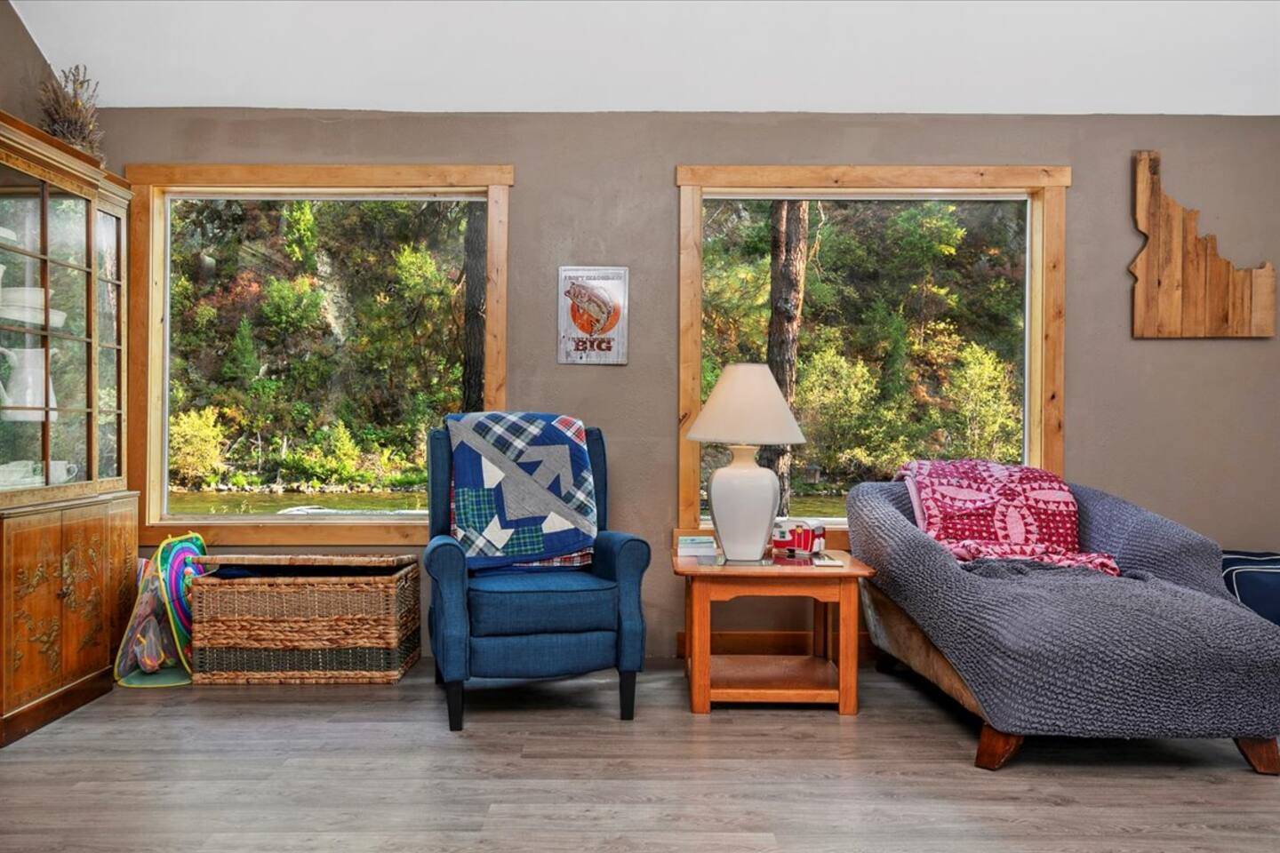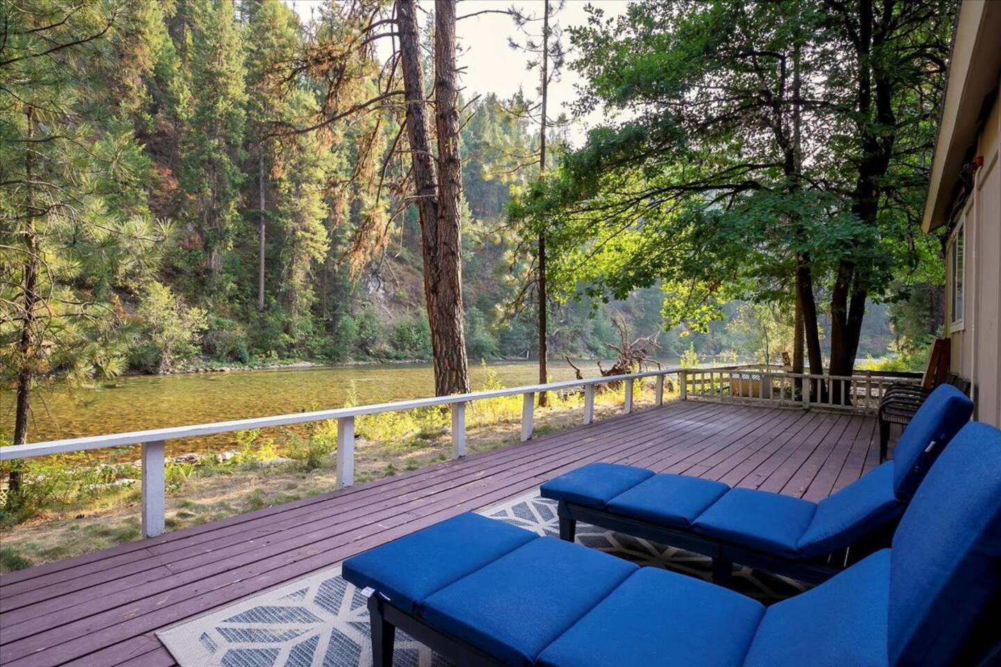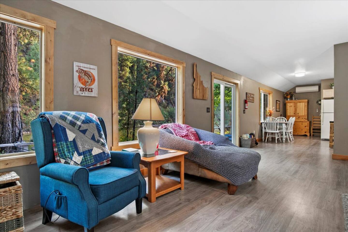Relax with the whole family at this peaceful place to stay on the Payette river. Bask in the sun on the small private beach, and the large patio. The main living area is large and ready for your next family game night. Look for the new Osprey nest on the mountain behind the cabin. Hot springs are 4 miles to the North, and 5 miles to the South. Explore to find huckleberries and other mountain treasures. Start your next adventure here.