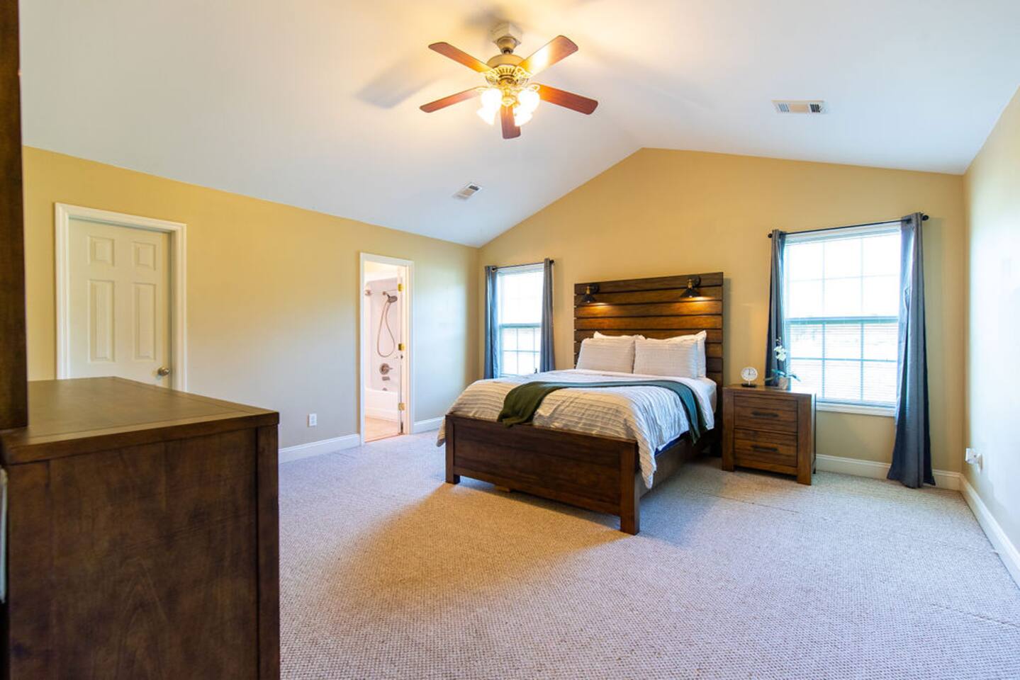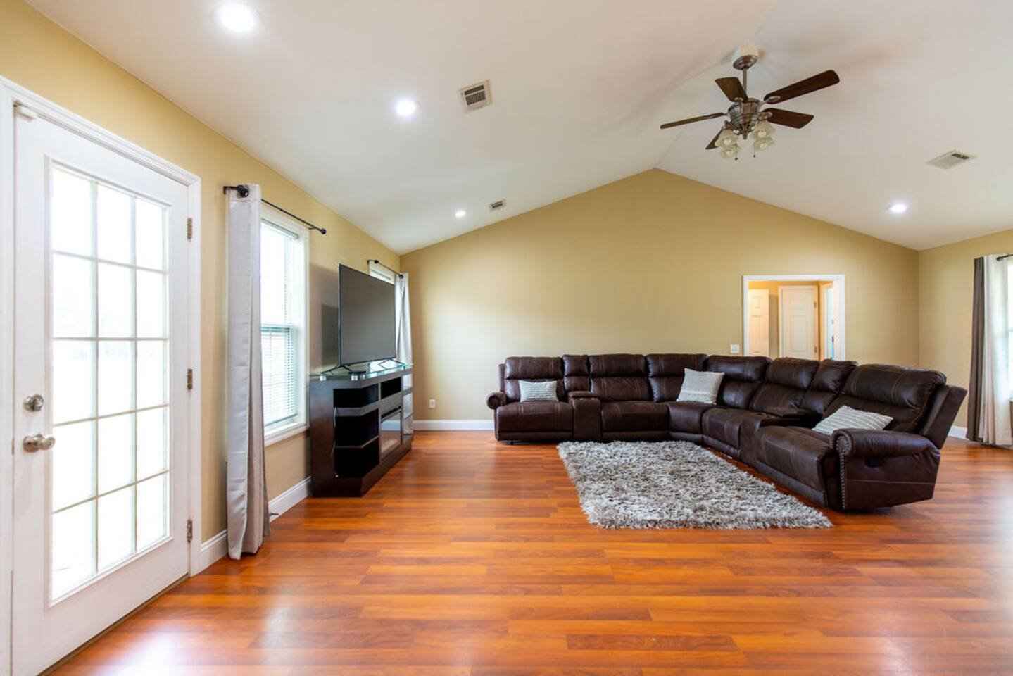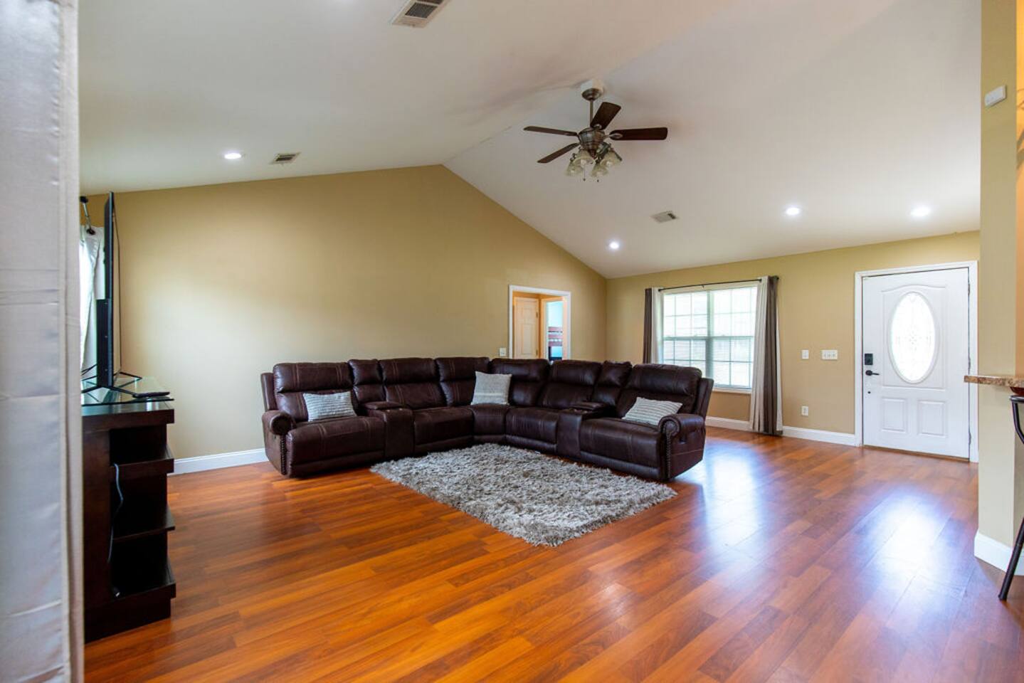 • Fully-Equipped Kitchen • Free Wi-Fi • Driveway Space for 4 Vehicles • Heating + Air Conditioning • Large Backyard • In-house Washer/Dryer + Detergent • Smart TV w/ Streaming Services • Screened in porch with Hot Tub Welcome to our charming single-level home in Lenox, GA. This 2,000+ sq. ft 3-Bedroom House offers many great features and amenities accommodating up to 8 people. • Master Bedroom: Queen bed, ensuite bathroom • 2nd Bedroom: Queen bed • 3rd Bedroom: Bunk bed • 1st Bathroom: Tub/shower combo (connected to master bedroom), toiletries, towels. • 2nd Bathroom: Tub/shower combo, toiletries, towels • Living area: Smart TV, large sectional • Kitchen: fully equipped, cooking utensils provided • Laundry Room w/ full-size washer and dryer LOCAL FAVORITES Food and Drink • Pit Stop BBQ & Grill: great local spot for some down-home southern bbq! • El Metate: this if your lunch or dinner spot for great Mexican food dishes. • The Local Kitchen And Bar: American, Creole, and Cajun cuisine along with handcrafted cocktails Local Activities • Georgia Museum of Agriculture & Historic Village • Georgia Peanut Commission • The Market at Rutland Farms: Petting zoo, you-pick strawberry field, and more