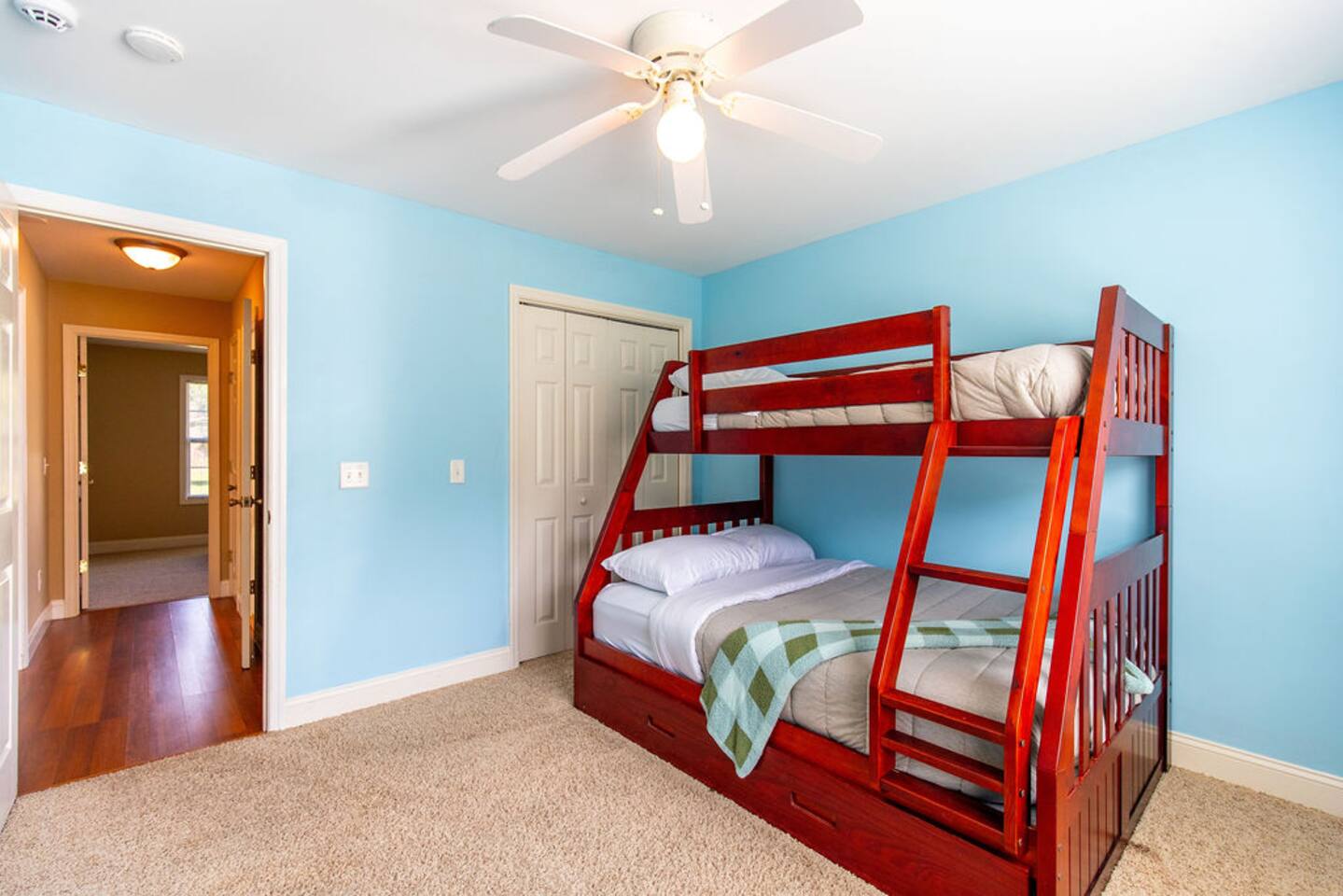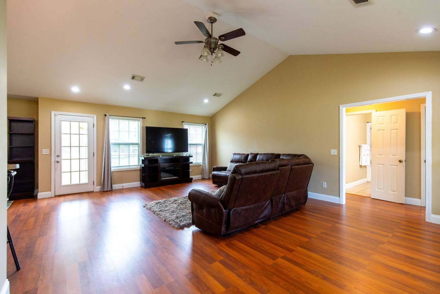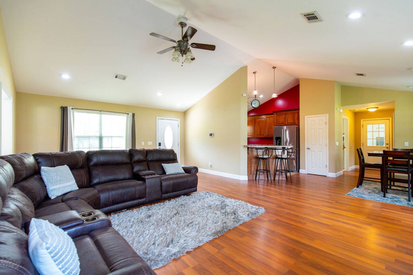 Escape to the tranquility of our country property that’s nestled across from the tall pine tress offering a serene retreat just moments away from freeway access. You'll be greeted by the peaceful surroundings and the charm of our country home. The home has 3 bedrooms, each thoughtfully designed for a comfortable and relaxing stay. In the heart of the home lies in the fully-equipped kitchen. Unwind in the cozy living room, and put your feet up in reclining sectional while you kick back and relax.